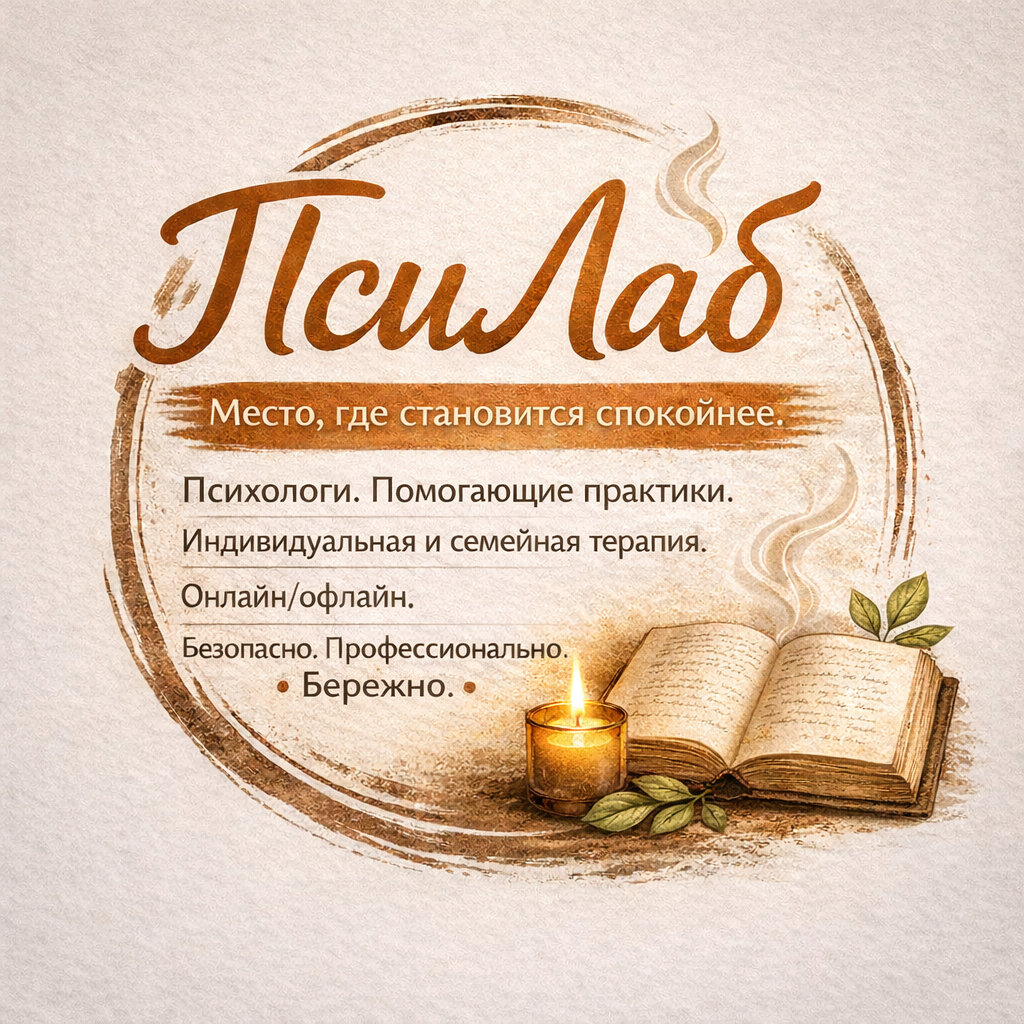 ПсиЛаб — это сообщество специалистов разных направлений (Гештальт-терапия, EMDR/ДПДГ, КПТ, семейная терапия, арт-подходы, сексология, профориентация), где к вашему внутреннему миру относятся бережно и по-взрослому: мы создаём безопасное пространство, помогаем разложить хаос по полочкам и постепенно “перенастроить” устойчивые сценарии реагирования